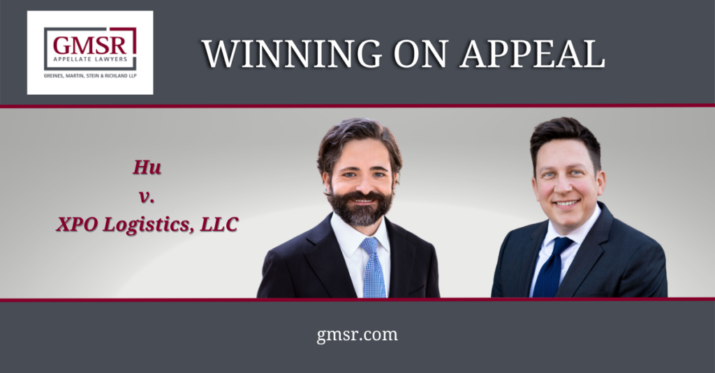 Click here to read the Court of Appeal’s opinion: Hu v. XPO Logistics, LLC (2026) 117 Cal.App.5th 1197 [Second District, Division Five].