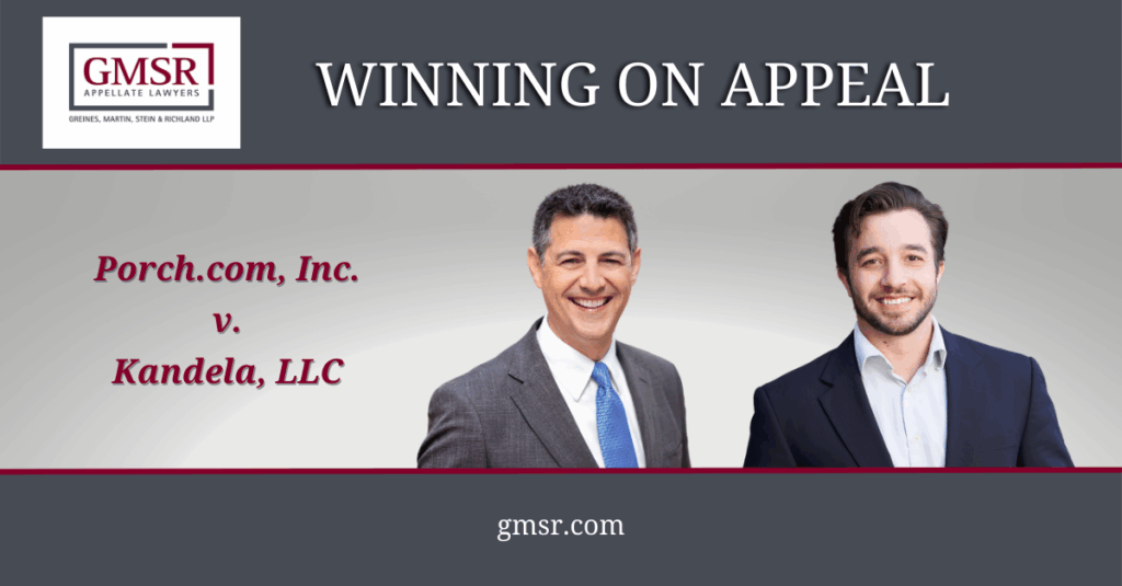 Click here to read the Court of Appeal opinion: Porch.com, Inc. v. Kandela, LLC (Apr. 14, 2025, B326289) 2025 WL 1098243 [Second District, Division Seven].